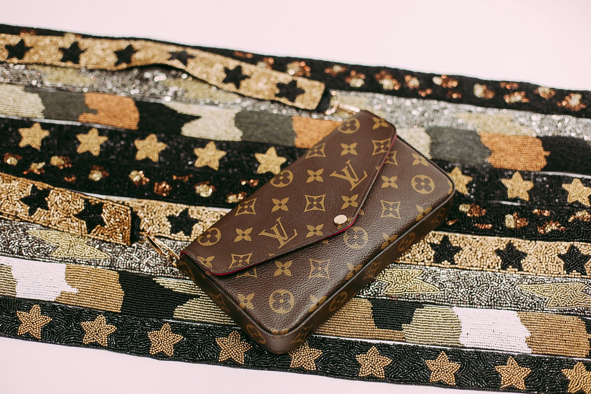 KUSTOMIZE IT WITH THESE HANDMADE BEADED STRAPS! 43 inches x 1.5 inch wide – with gold clasp to clip onto any purse.