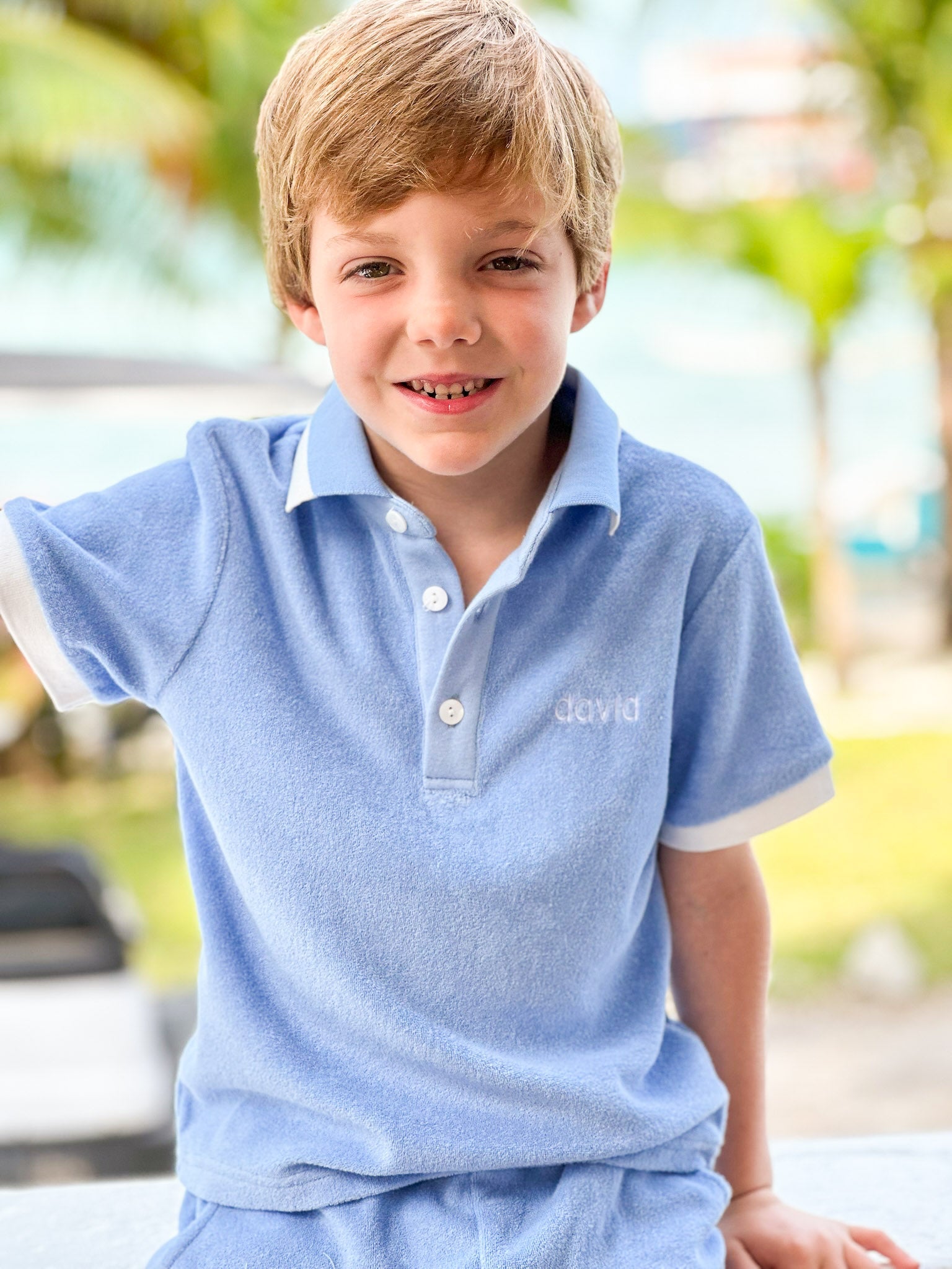 Fun in the sun or a relaxing day with friends, the Blue Terry Cloth Cover Up Shorts Set is sure to be a great fit. This set features a top with a blue and white button down collar and white trim around the sleeves. The matching blue terry shorts have functional pockets and an elastic waist for a perfect fit. 100% cotton.