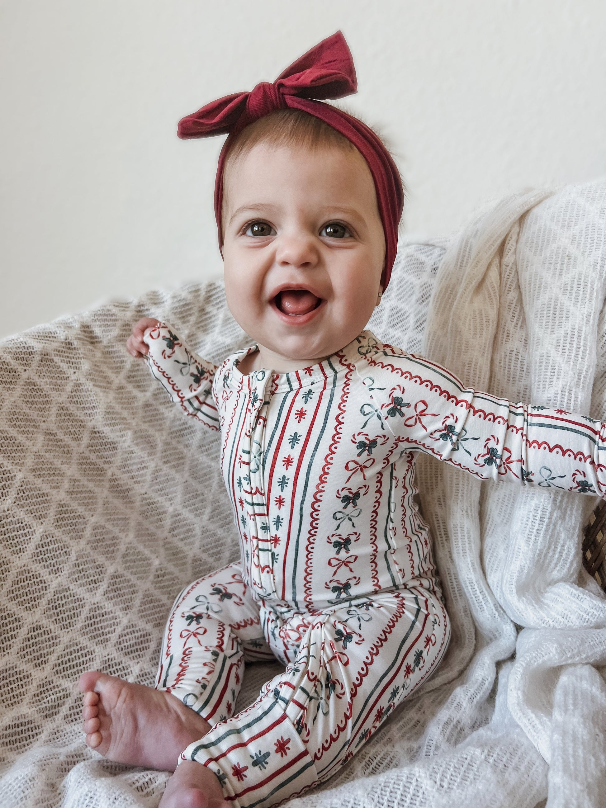 Discover comfort and style with our Bamboo Zippy Romper. Made from a luxurious blend of 95% bamboo viscose and 5% spandex, this romper provides a soft touch at 220 gsm. Featuring foldover cuffs and feet for all sizes, with non-slip soles for sizes 9-12 months and up, it effortlessly combines comfort with practicality.