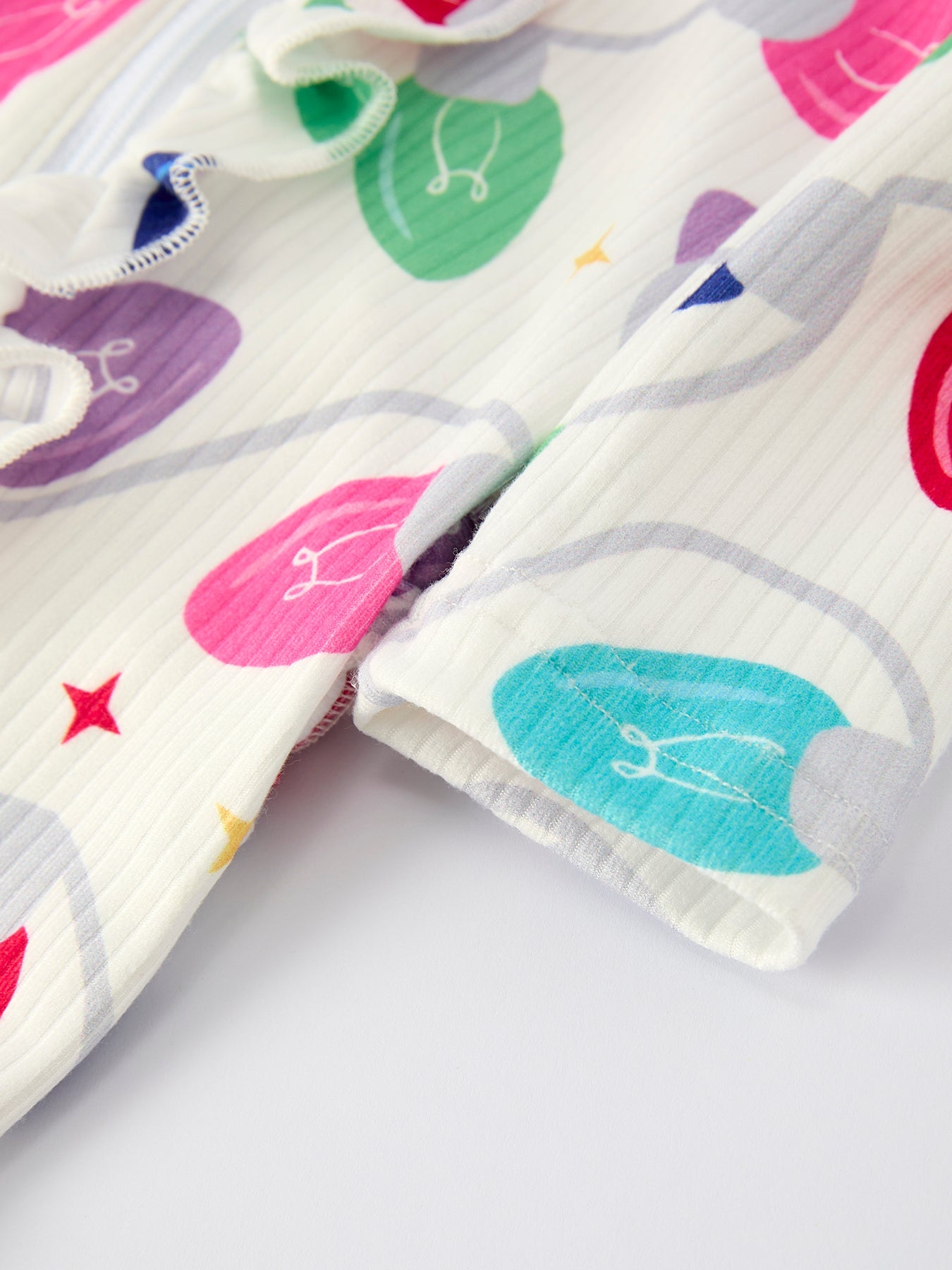Christmas Colorful Light Bulb Baby Girls Romper with Hat