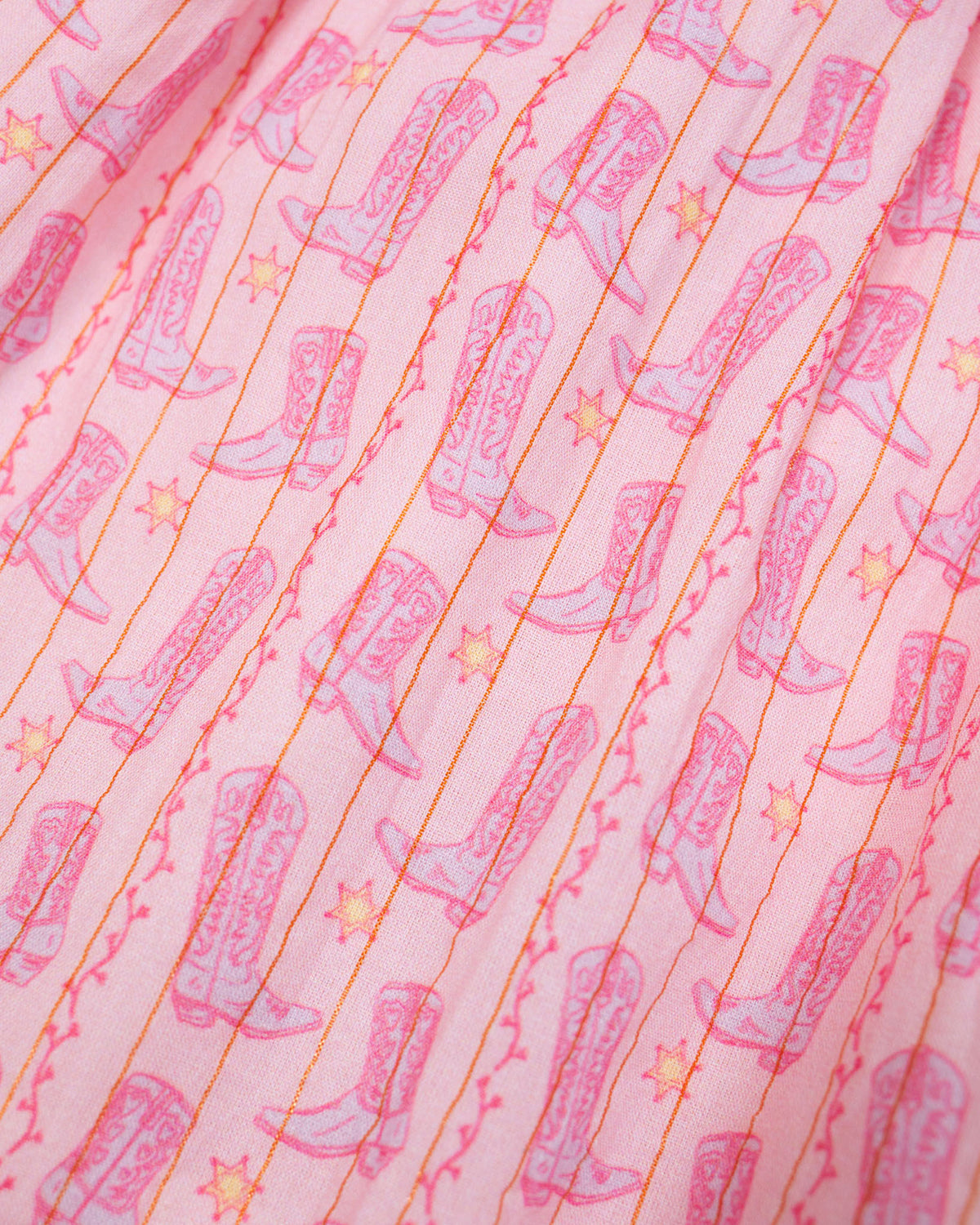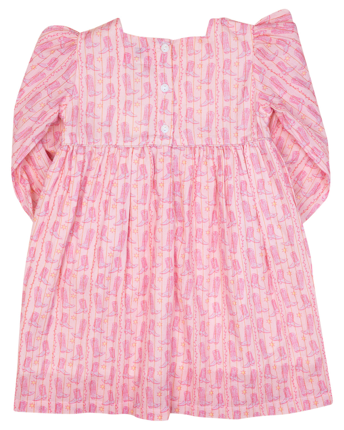 A little bit of country, a whole lot of charm! This Cowgirl Boots Dress with Gold Lurex is the perfect blend of western flair and feminine elegance. Featuring a fun cowgirl boot print with shimmering gold lurex accents, this dress shines with every twirl. The long sleeves and square neckline add a touch of vintage charm, making it ideal for fall festivities, rodeo days, or casual outings.