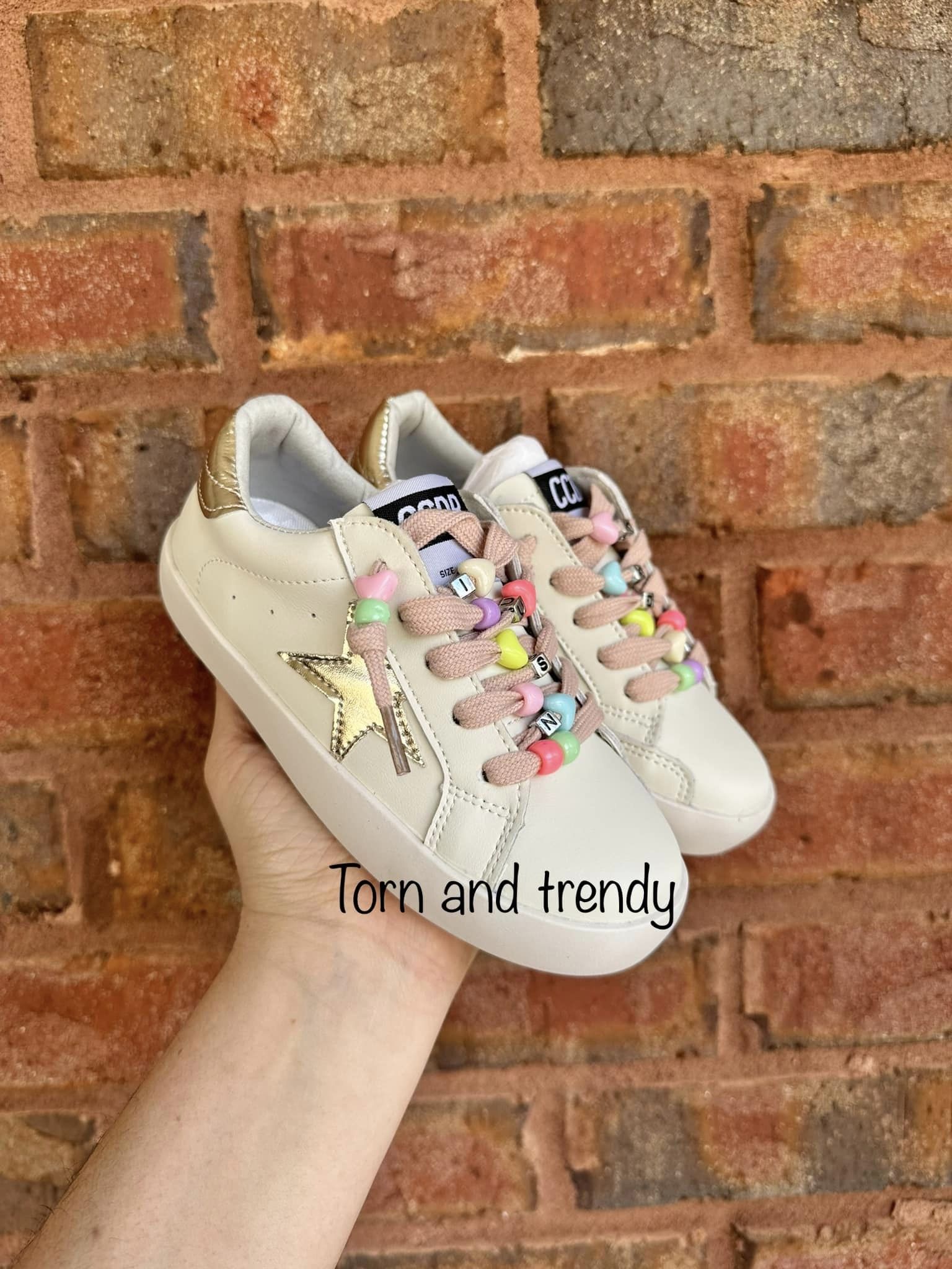 Stylish and Trendy Star Sneakers, rubber sole, suede and leather materials. Some Sneakers do include a glitter material. Insole is very soft and cushiony for long lasting wear. Slip resistant Soles are great for kids of all ages whether being worn inside or outside. These shoes do fit True To Size, Please Check Size chart in photos for accurate ordering. Sneakers include true laces, faux laces as well as zip closures. Shoes are not shipped in boxes in attempt to be Green and reduce our over all carbon footprint.