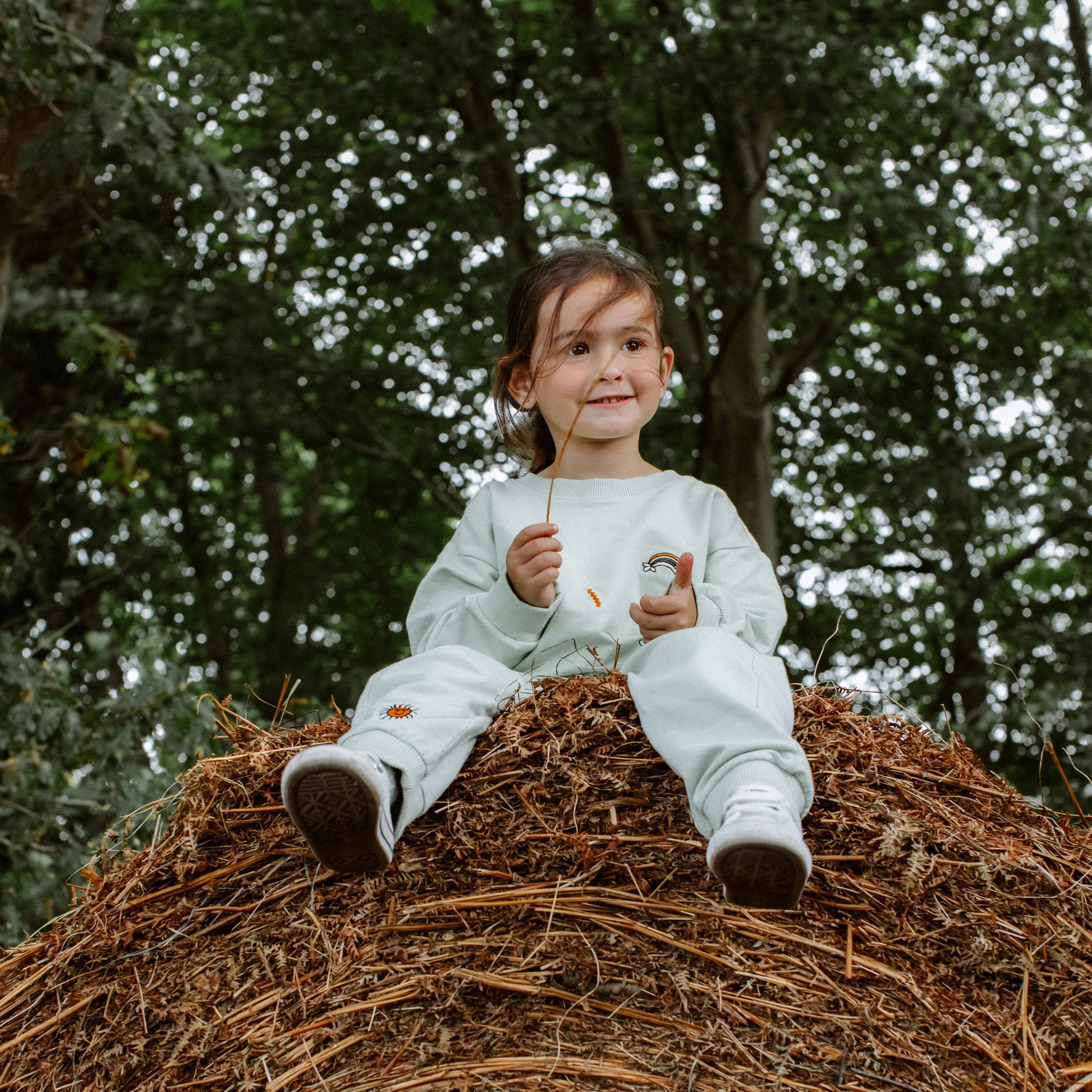 - This Green Fun Sweatshirt & Sweatpants Set features embroidered designs inspired by young artists in a kids' drawing Instagram contest.