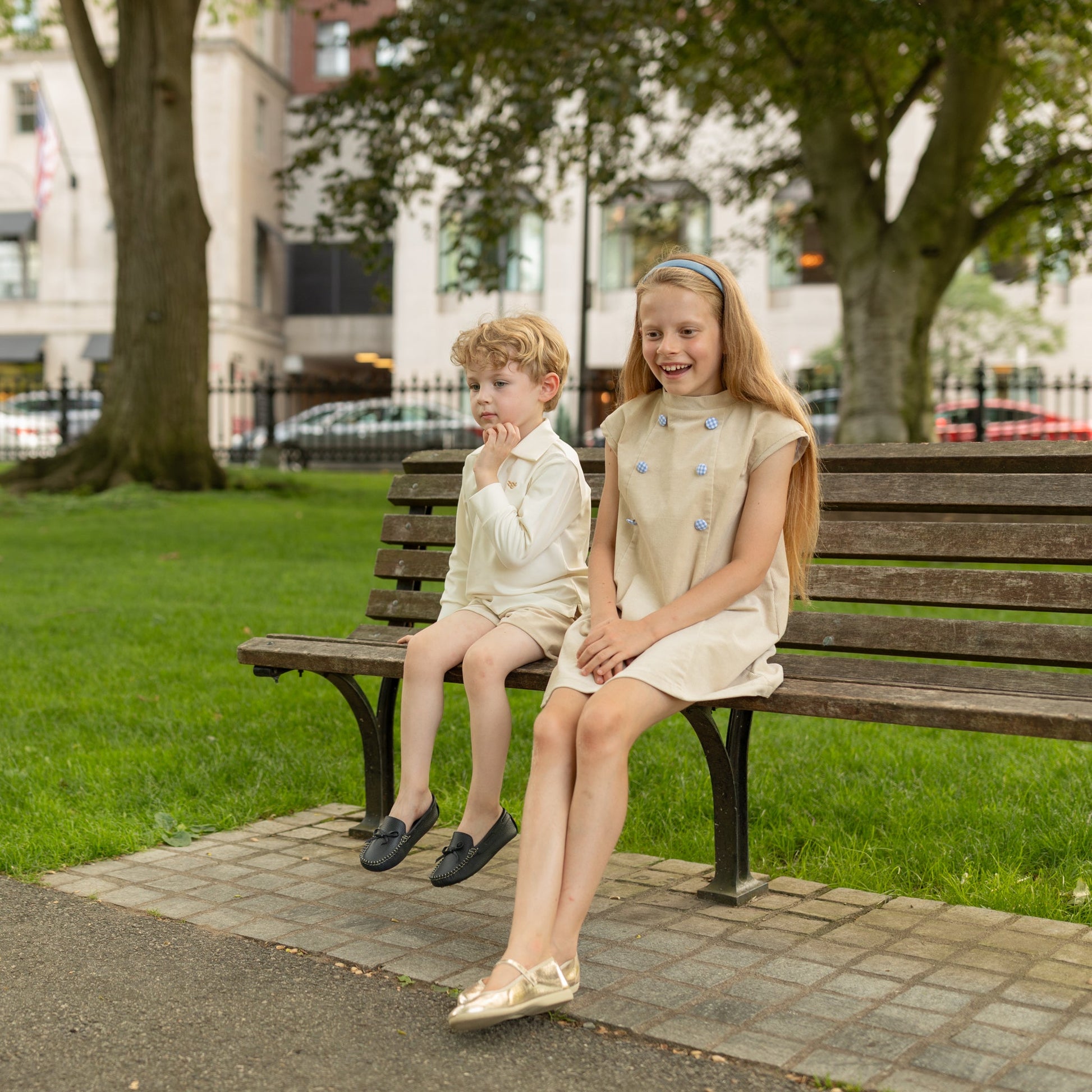 A year-round favorite with a fall twist, the Isabel Dress returns in cozy King’s Way Khaki Corduroy, updated with covered buttons in Charles Street Check for a polished touch of pattern. This classic silhouette is equal parts soft, structured, and sweet—perfect for seasonal portraits, holiday gatherings, and timeless everyday wear.