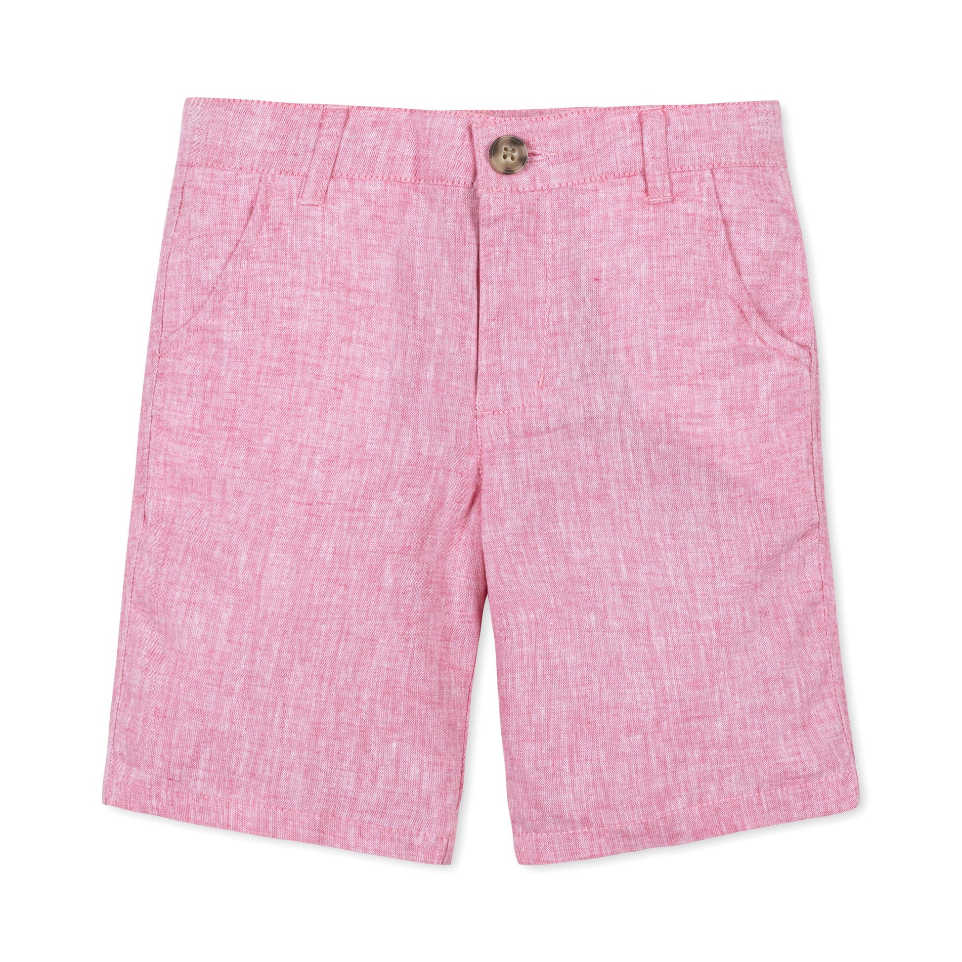 These classic chino styled shorts are the perfect addition for his summer wardrobe. They are super soft, thanks to the addition of cotton, and have an adjustable waistband to ensure comfort. Faux tortoise buttons, an indigo stripe waistband lining and back pocket flaps give these short a preppy, finished look.