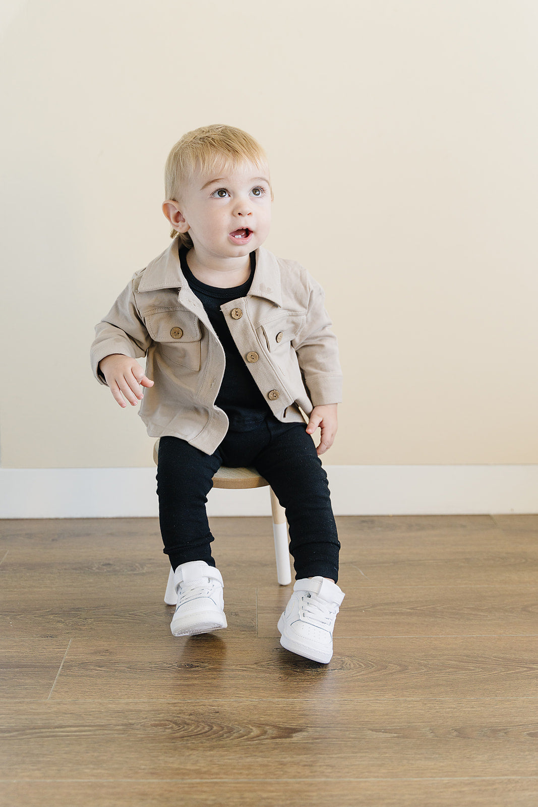Pants: Slim fit design with a flexible cut that moves with your baby. Soft elastic waistband ensures easy wear and a secure fit. Cuffed ankles create a clean, tapered finish.