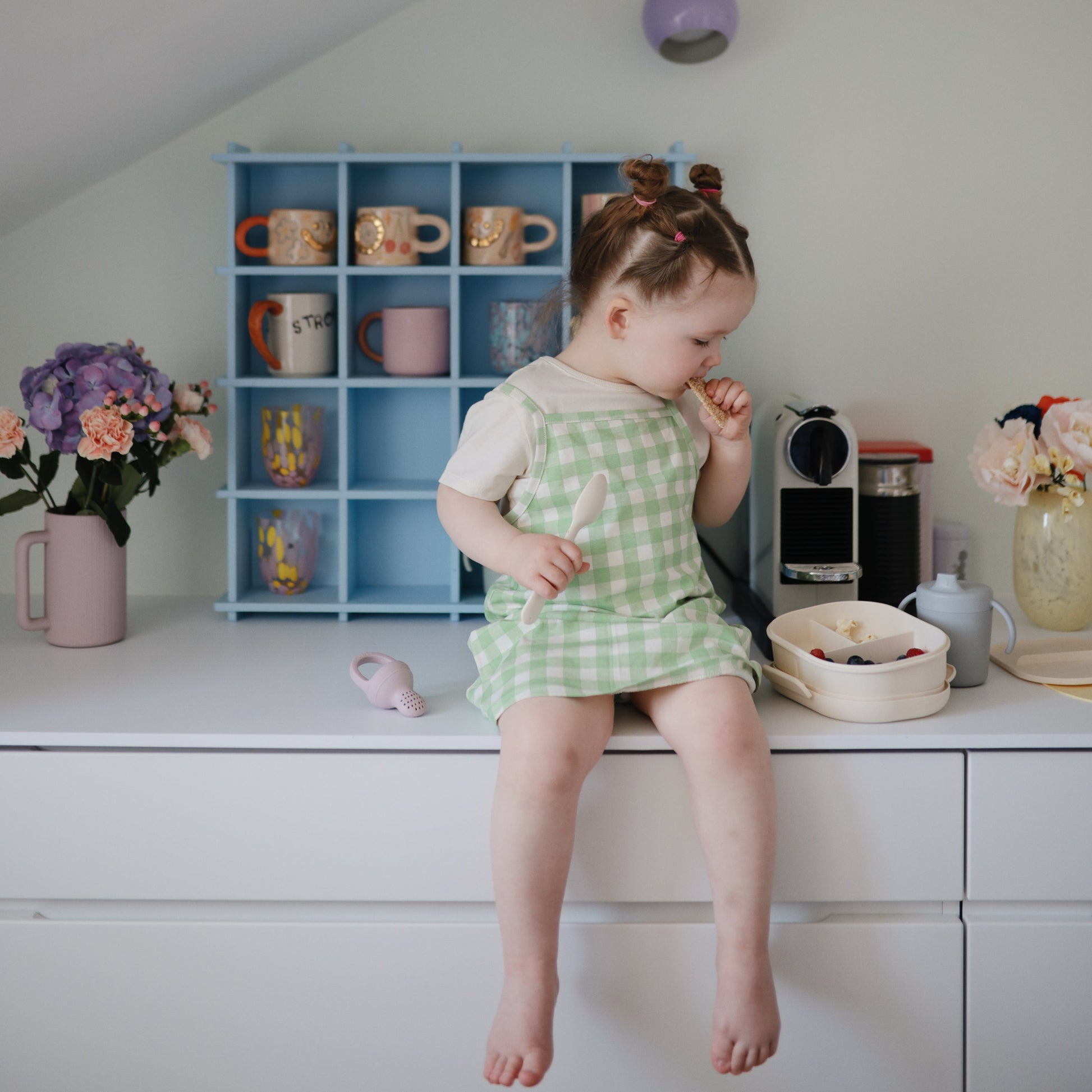 Made in Denmark from non-toxic plastic, this thoughtfully designed lunchbox brings together style and function for mealtime on the go. The tightly sealed lid keeps spills at bay, while built-in compartments keep foods neatly separated and fresh until your little one is ready to eat. It comes with a matching fork and spoon that lock securely in place and stay clean thanks to the removable divider—making packing, carrying, and enjoying meals easier than ever.