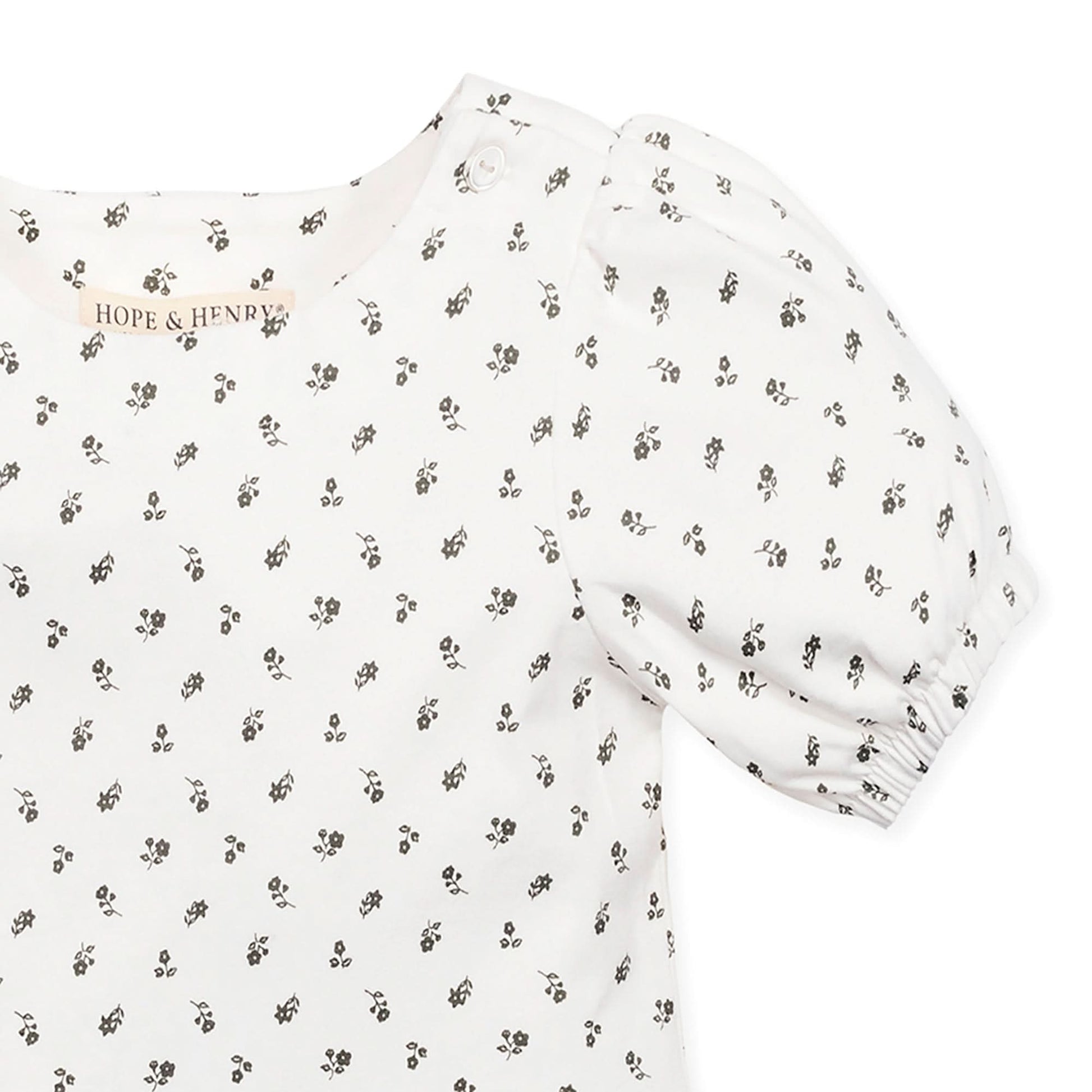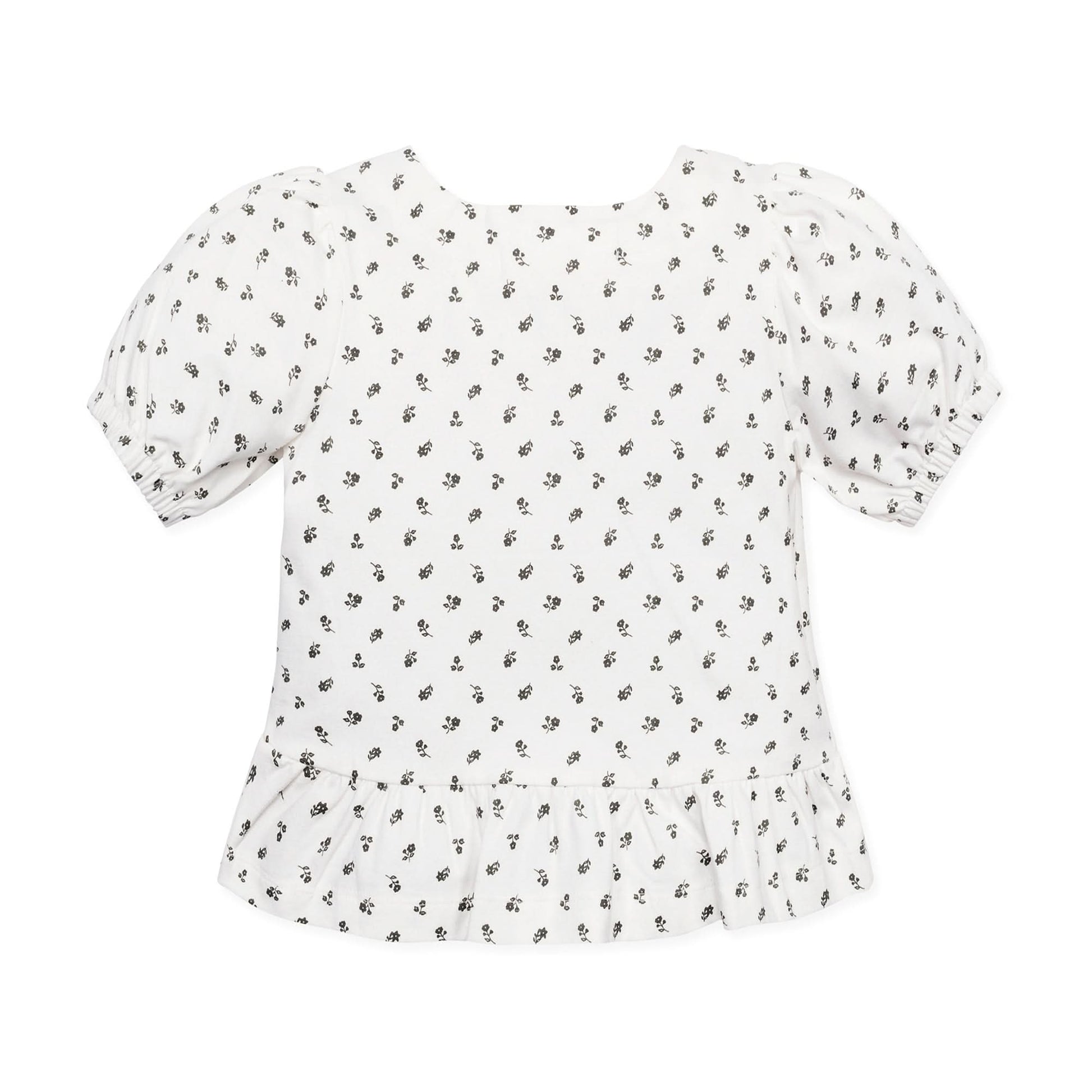 A girly peplum hem and fun bubble sleeves define this soft top, cut from organic cotton jersey with a hint of stretch for comfort. A button at the shoulder placket adds a special detail and makes for easy dressing. Pairs beautifully with our collection of shorts for a summer look she will love!