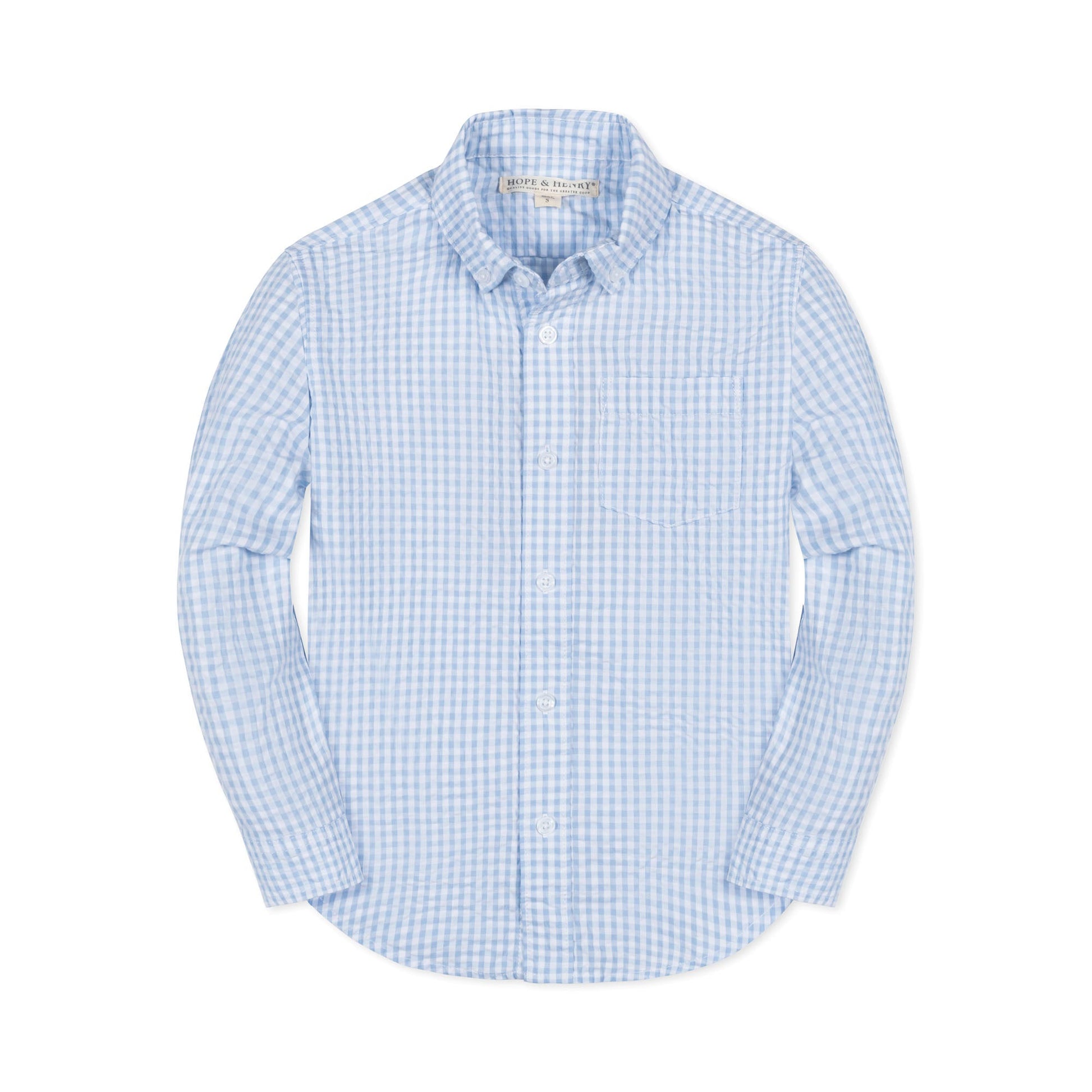 Our classic long sleeve button down shirt is cut from soft organic cotton seersucker that has a light and breathable feel. Features classic styling that makes it so easy to dress up or down, like roll up sleeves, buttons at the center front and a functional chest pocket. A spring staple that he'll love.