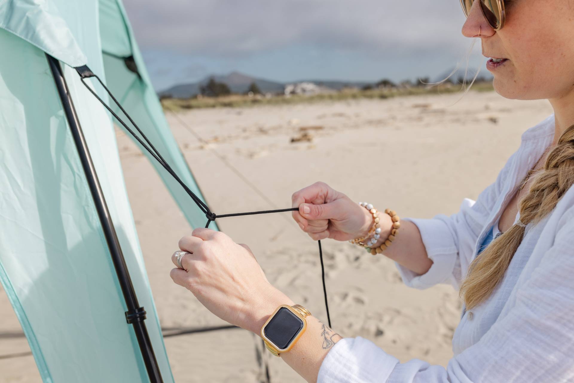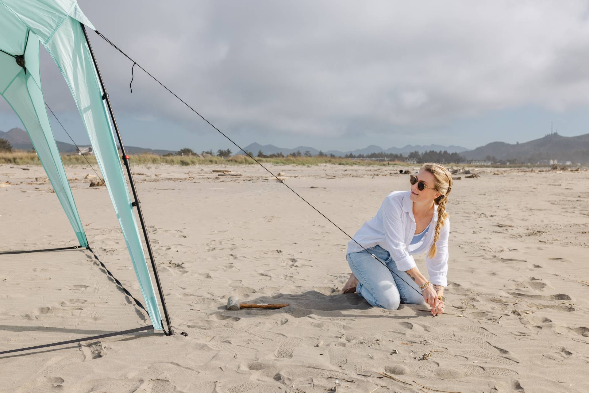 - WINDPROOF & STABLE DESIGN: Stay secure in even breezy conditions! Our sun canopy comes equipped with takes, a windproof rope, and sandbags, providing you with a stable shelter that won’t blow away on windy days. Perfect for the beach, picnics, or outdoor events.