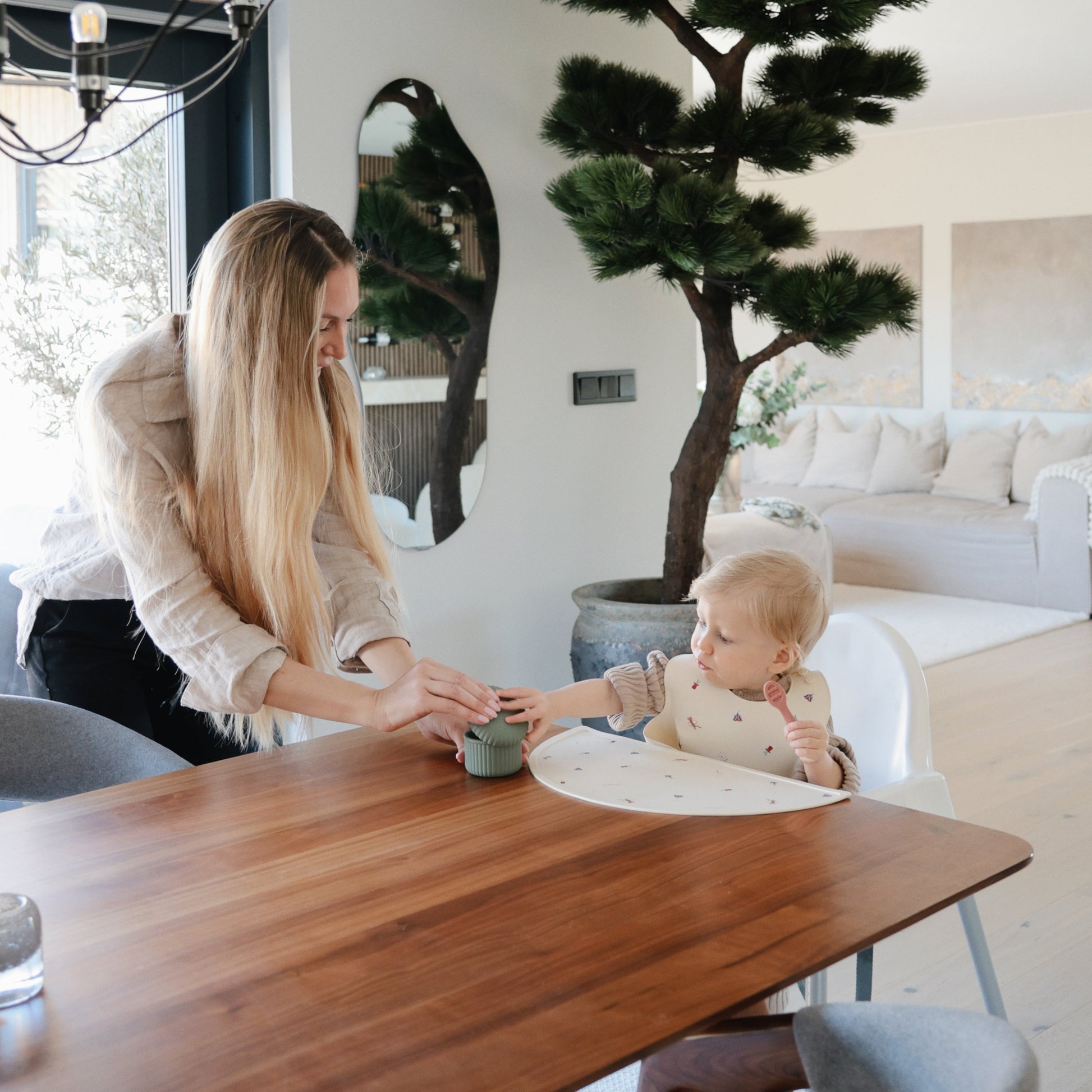 Keep your little one comfy and clean with our thoughtfully designed collection of silicone baby bibs. Mushie bibs come in cheerful patterns and soothing colors that bring a little joy and calm to mealtime. Featuring an adjustable neck strap for a perfect fit as babies grow, plus a deep front pocket to catch crumbs and spills. Made of non-toxic silicone, they’re easy to clean, built to last, and a simple, practical essential for every mealtime adventure.