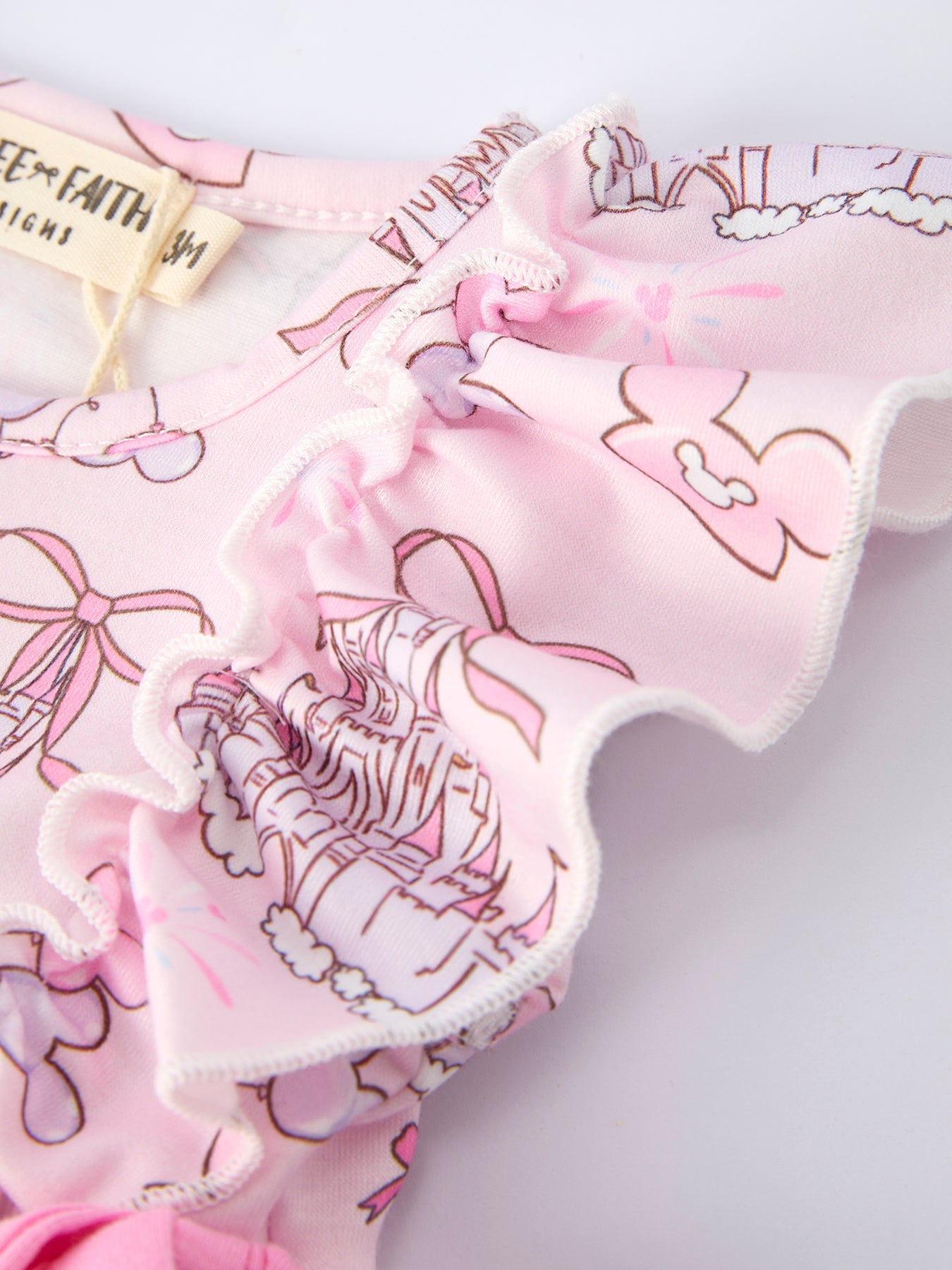 Summer Castle Girls Ruffled Romper Twirl-ready comfort meets playful style in this charming ruffled romper. Designed for active girls who love to move, the soft fabric and flutter sleeves create an effortlessly cute look perfect for warm-weather adventures. The relaxed fit allows room to grow, while delicate ruffles add that special touch she'll love. Ideal for playdates, family outings, or casual everyday wear—this romper is the go-to piece that keeps her comfortable and picture-perfect all season long.