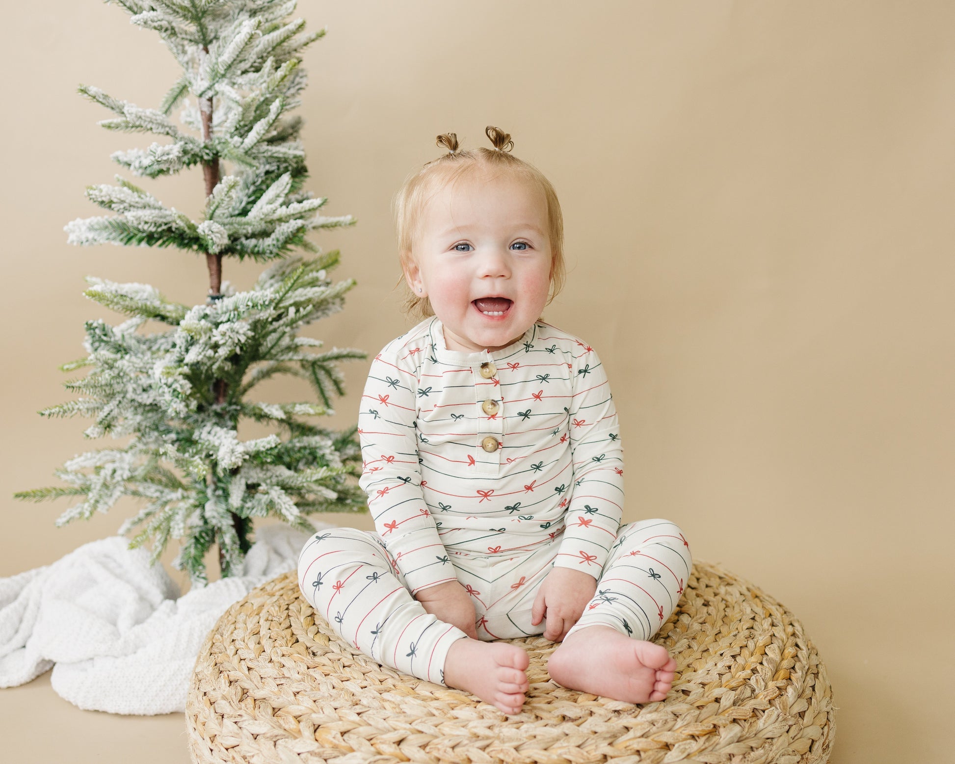 Tied with a Bow Christmas 2pc Henley Bamboo Pajamas