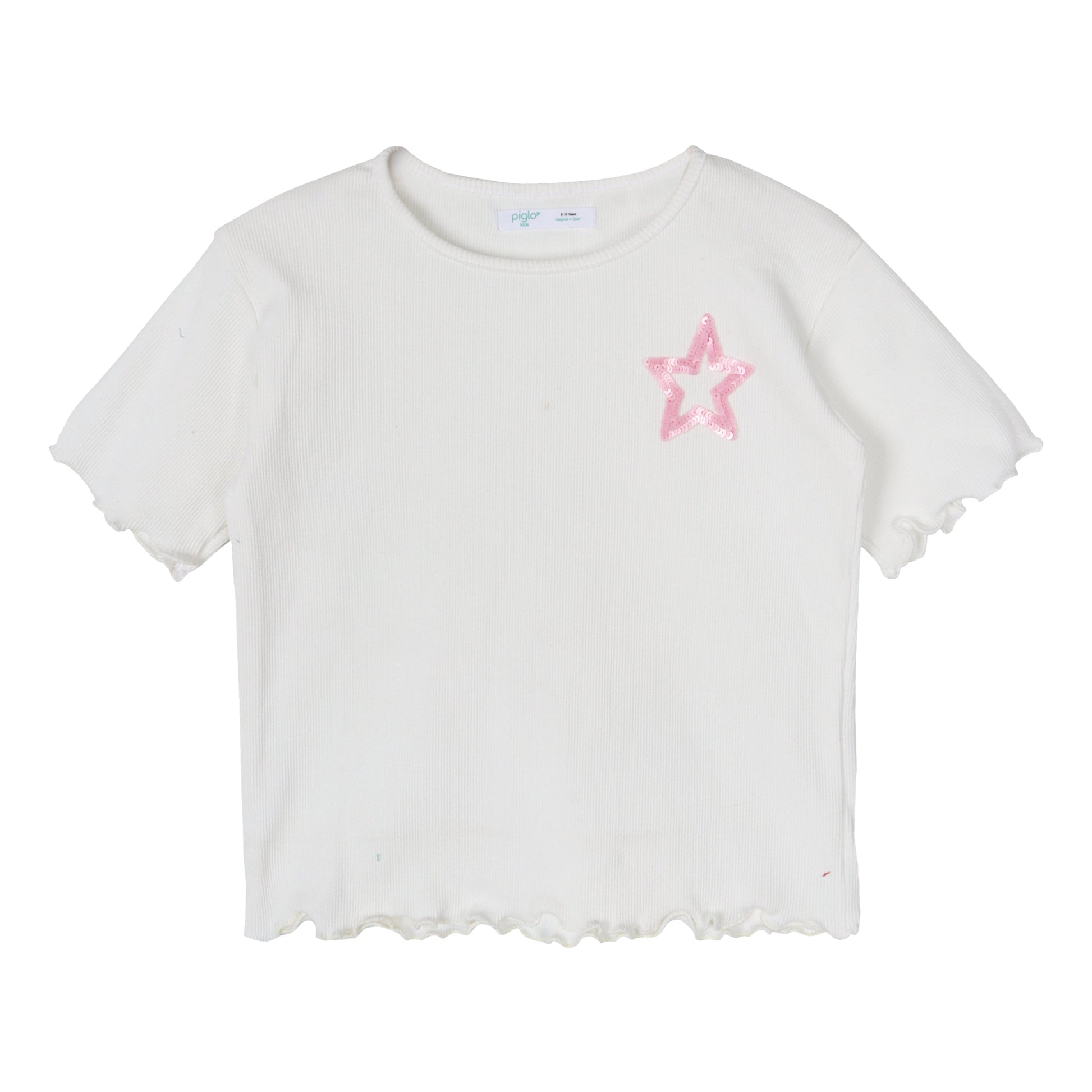 White Sequin Star Ribbed Top